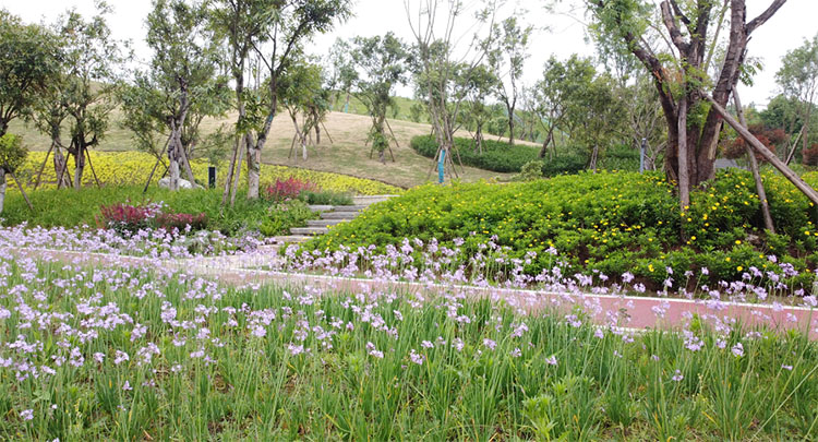 興綠園林公司按照海綿城市建設(shè)要求,將海綿城市建設(shè)作為一項(xiàng)長(zhǎng)期發(fā)展規(guī)劃融入到園林綠化建設(shè)過(guò)程中,積極推廣踐行海綿城市設(shè)計(jì)及建設(shè)。2021年,興綠園林公司實(shí)施的龍澗溪公園(高鐵站片區(qū)段)工程項(xiàng)目,將水生態(tài)治理和場(chǎng)地內(nèi)海綿系統(tǒng)建設(shè)相結(jié)合,利用原有的水系、山體以濕塘、雨水濕地、生態(tài)浮島、生態(tài)植草溝、植物緩沖帶透水鋪裝及蓄水模塊等構(gòu)建公園內(nèi)部水系統(tǒng),結(jié)合城市管網(wǎng)灰色基礎(chǔ)設(shè)施及超標(biāo)雨水排放系統(tǒng),利用新材料、微地形改造、植物生態(tài)生境,形成滲、滯、蓄、凈、用、排的水系循環(huán),大大減輕周邊城市管網(wǎng)排水壓力。2021年8月投入使用后,被瀘州海綿辦作為瀘州海綿城市公園建設(shè)典范,住建部、山西省等省部級(jí)單位、省內(nèi)各地市州單位先后前來(lái)參觀交流,得到了各界領(lǐng)導(dǎo)的高度認(rèn)可,市民對(duì)海綿城市建設(shè)的知曉度、滿意度評(píng)價(jià)也越來(lái)越高。