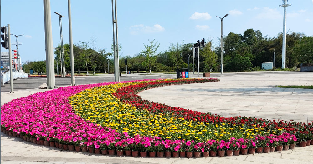 按照市委、市政府下達(dá)的氛圍營(yíng)造任務(wù),興綠園林公司高效組織、上下聯(lián)動(dòng),經(jīng)過(guò)多次現(xiàn)場(chǎng)踏勘,制定了鮮花擺放設(shè)計(jì)方案。以會(huì)展中心外圍及酒谷大道隔離帶、街邊綠地為重點(diǎn),采用栽植紅色和黃色的鮮花,突出色彩對(duì)比,形成視覺上的沖擊,營(yíng)造更好的感官體驗(yàn),確保酒博會(huì)期間管護(hù)范圍內(nèi)的植物生機(jī)盎然、整潔美觀。