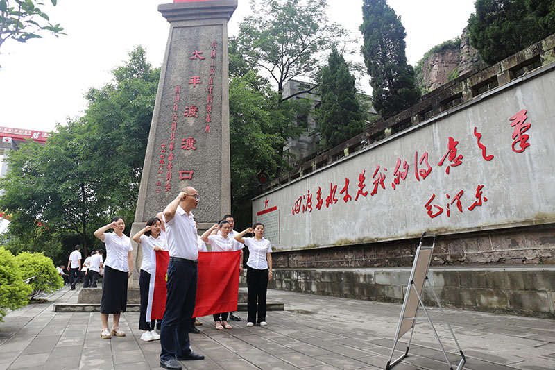 隨后,走訪古藺太平渡長征老街,一處處歷史厚重的紅軍舊居呈現(xiàn)出當(dāng)年紅軍長征不怕任何艱難險(xiǎn)阻,不惜付出一切犧牲的偉大革命精神。瞻仰太平渡渡口紀(jì)念碑,重溫入黨誓詞,面對鮮紅的黨旗宣誓,傳承偉大的長征精神,做新時(shí)代合格共產(chǎn)黨員。