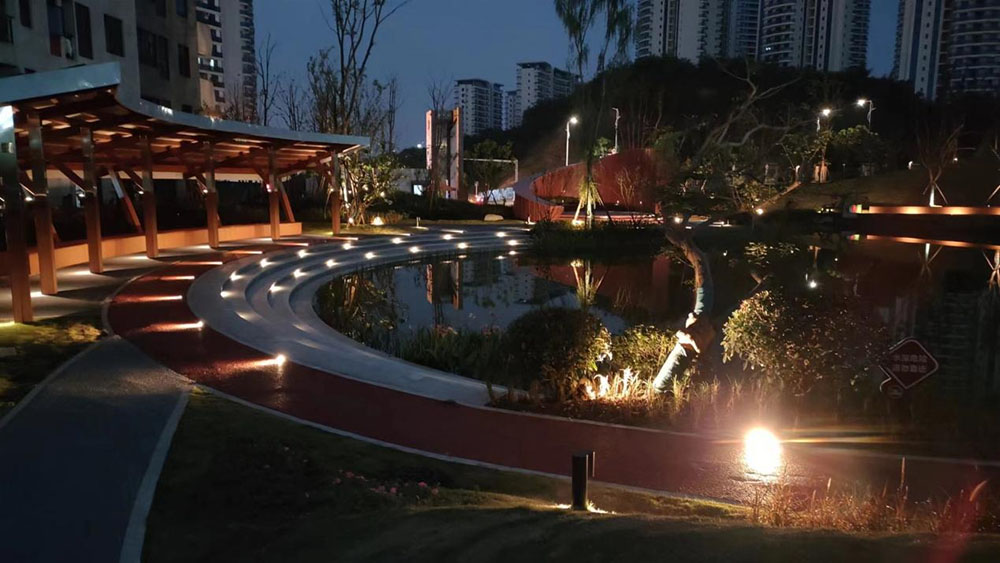 項(xiàng)目綠化面積約1萬平方米,主要建設(shè)內(nèi)容為人工湖、景觀小品、廣場(chǎng)道路、景觀照明、地形塑造及綠化等。人工湖兼具生態(tài)和景觀性,湖水在陽光照耀下波光粼粼,湖周綠植環(huán)繞,花草繁茂,植物配置遵循生態(tài)、鄉(xiāng)土、季相變化等原則,四季景致各異。周邊景觀小品精雕細(xì)琢,富有文化內(nèi)涵和藝術(shù)美感,與人工湖相映成趣。道路鋪裝蜿蜒成趣,連接校園各處,豐富了通行和交往空間。